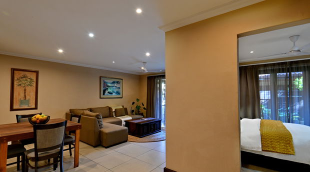 Private with it's own courtyard this one-bedroom suite is equipped with large flat screen satellite TV , queen size bed, en-suite bathroom with shower (only) modern inclusive kitchenette, lounge area with comfortable furnishings.